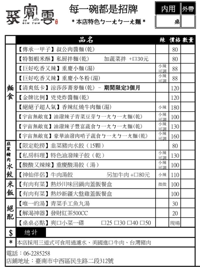 台南市聚賓雲·2025菜單2.0 --閱讀人次 : 1060