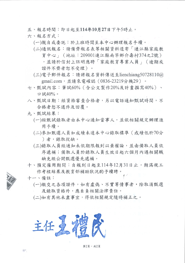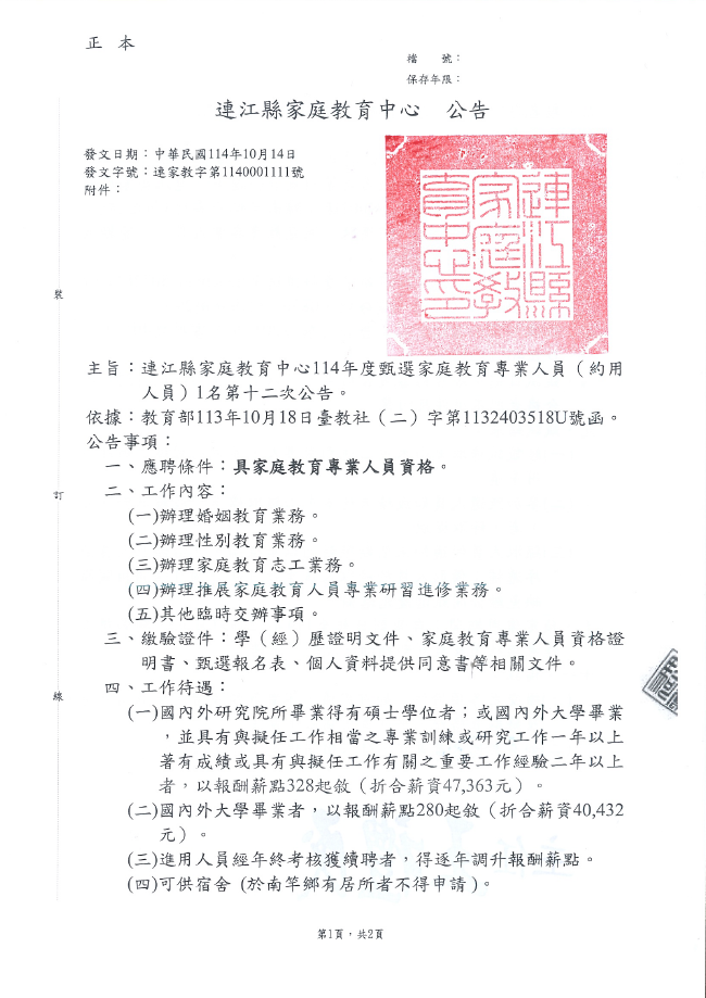 家庭教育中心甄選家庭教育專業人員1名第12次公告