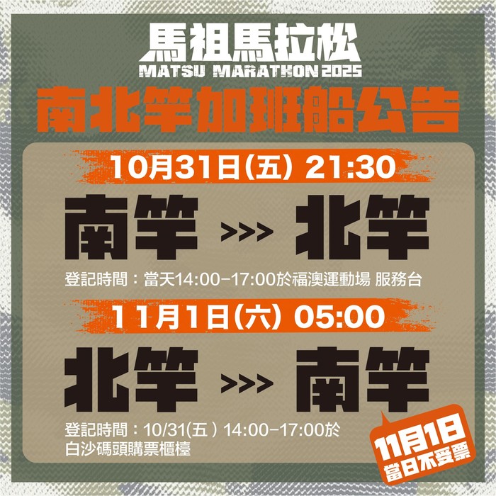 ⚑⚐ 11/1(六)05:00北竿 → 南竿