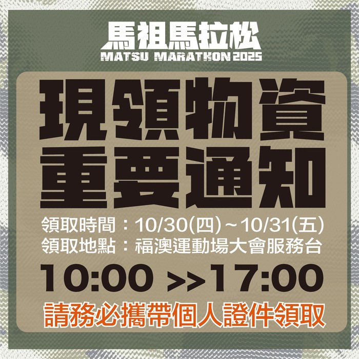 第十屆馬祖馬拉松現場領取物資 重要通知 --閱讀人次 : 1244