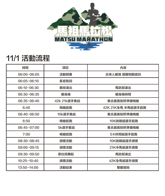 第十屆馬祖馬拉松11/1起跑時間提醒 --閱讀人次 : 2058