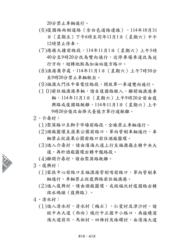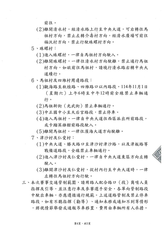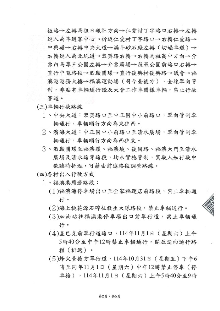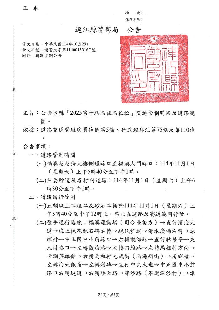 2025第十屆馬祖馬拉松道路管制公告