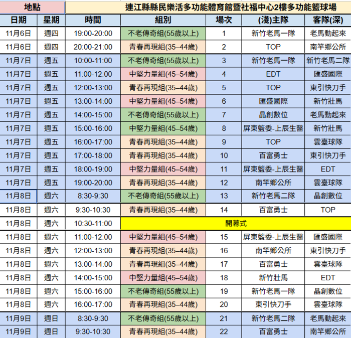 〔比賽地點〕 連江縣縣民樂活多功能體育館暨社福中心2樓多功能籃球場(南竿鄉)