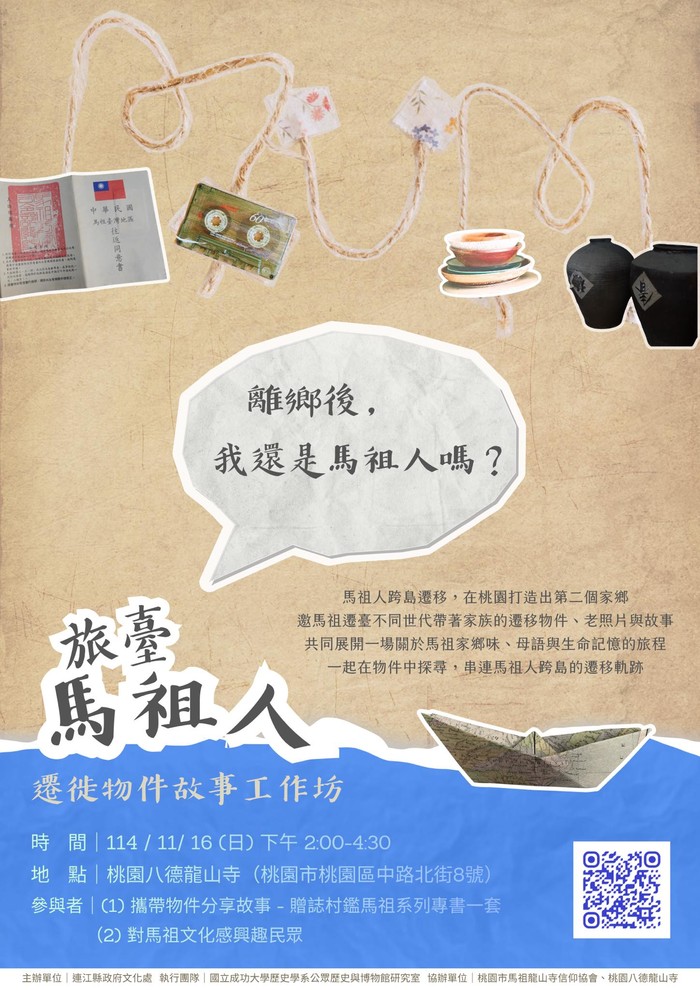 旅臺馬祖人遷徙物件故事工作坊 --閱讀人次 : 960 邀請旅臺馬祖人和對馬祖文化好奇的你