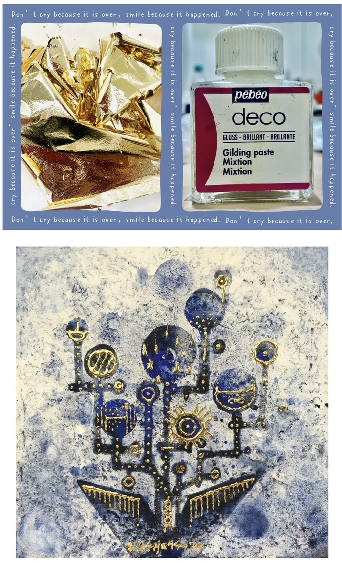 畫會準備材料:5號仿麻油畫布、環氧樹酯、金箔+金箔膠水、碳粉+紙盤、壓克力顏料.紙杯子.腳絆棒.紗布.養生膠帶.電子秤.紙膠帶.濕紙巾.酒精等等