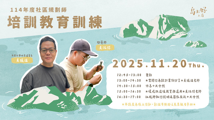 114島上好社區規劃師 培訓教育訓練 --閱讀人次 : 643 #114島上好 #上島 #社區規劃師 #培訓教育訓練