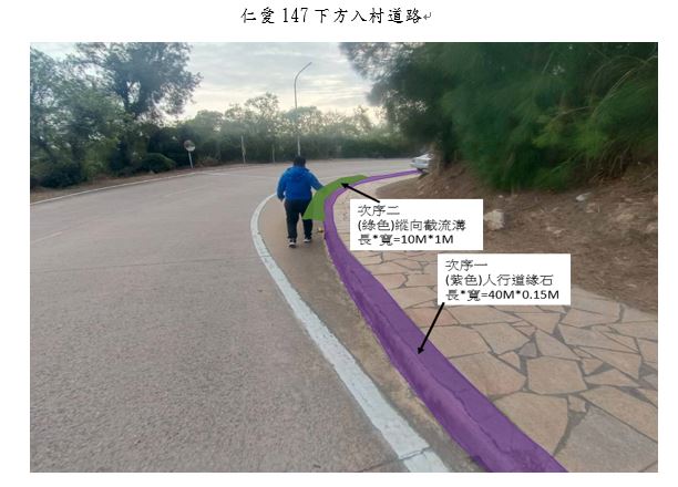 本工程預計於仁愛村-147下方入村路口到馬悠驛館旁道路