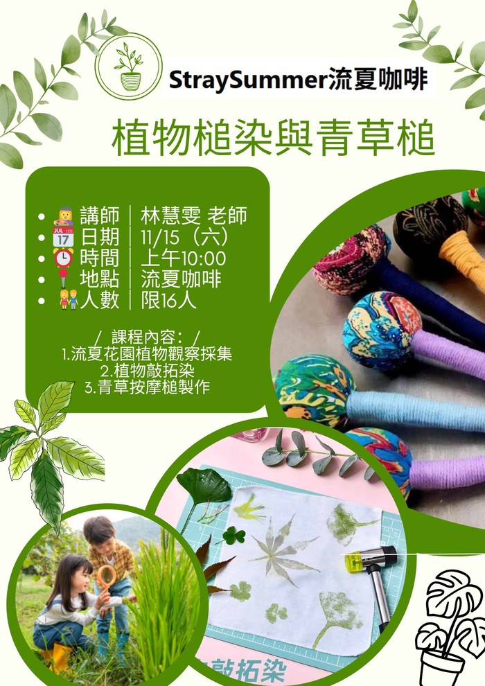 流夏花園植物觀察與採集、植物敲拓染、青草按摩槌製作