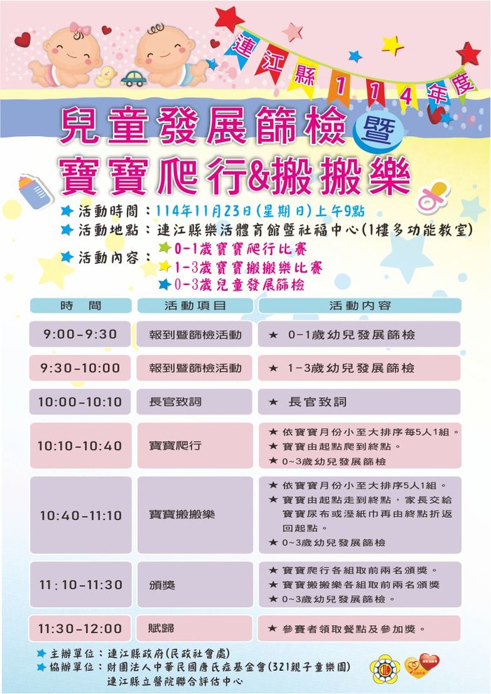 協辦單位:連江縣立醫院聯合評估中心、財團法人中華民國唐氏症基金會(321親子童樂園)
