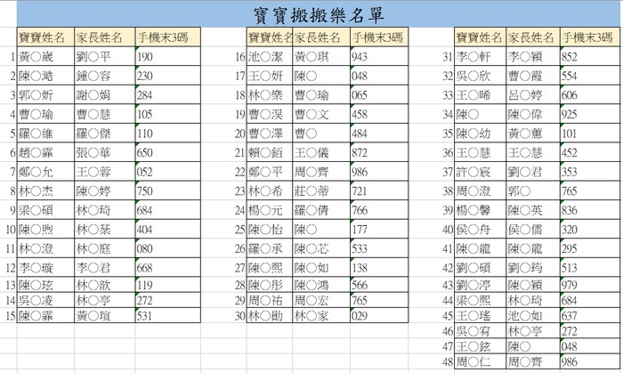 11/23寶寶爬行搬搬樂名單公告 --閱讀人次 : 853