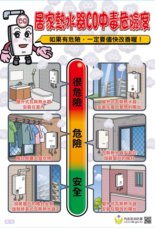 安裝熱水器,做對五件事(五要),遠離隱形殺手「一氧化碳」: