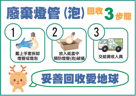 環資局表示,廢棄燈管、燈泡及LED燈具等照明產品多含有汞氣與電子元件,若隨意丟棄或未妥善處理,可能導致重金屬滲入環境,污染土壤與水源,甚至危害人體健康。透過正確回收,不僅可提煉再利用的金屬與玻璃材料,更能有效減少資源浪費與降低環境負擔。