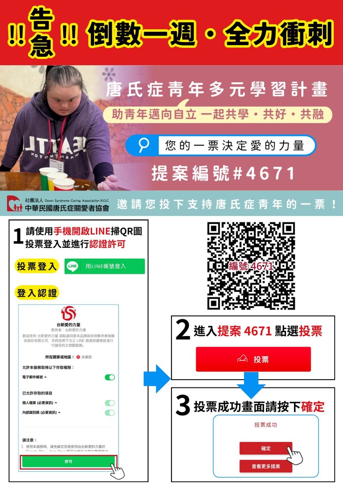 入選今年台新公益提案「您的一票決定愛的力量」名單
