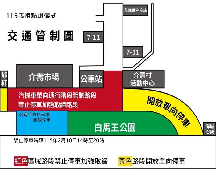 因辦理115年馬祖燈會點燈儀式,實施交通管制措施,請民眾配合。