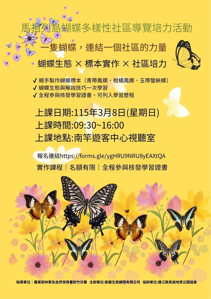 馬祖列島蝴蝶多樣性社區導覽培力課程 --閱讀人次 : 685 已額滿、已額滿