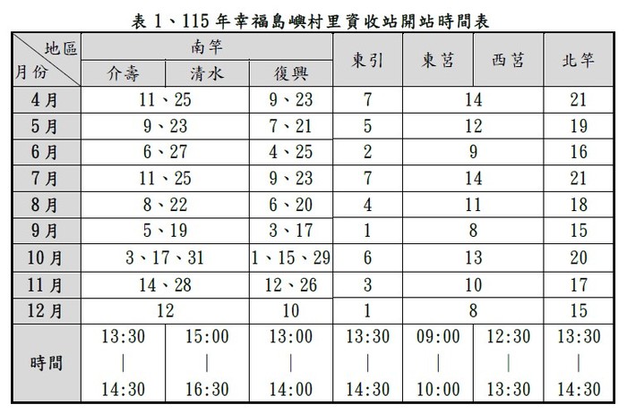 【介壽、清水】4/11幸福資收站公告 --閱讀人次 : 380 連江縣環境資源局公告