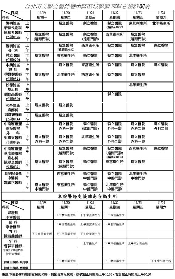 北市醫暨中南區聯盟(96)1119-1124支援行程
