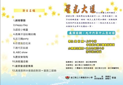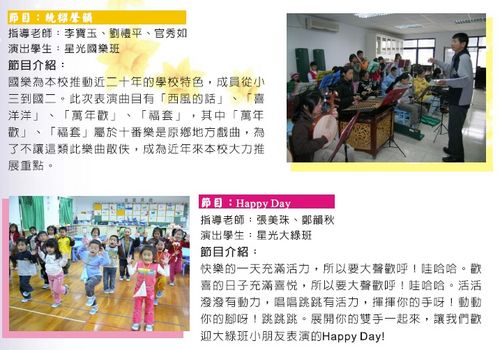 介壽藝術季—星光大道 2007.12.7(五)晚上7:30引爆歡樂 --閱讀人次 : 3111 兩年一度的介壽藝術季動態展演又來囉!