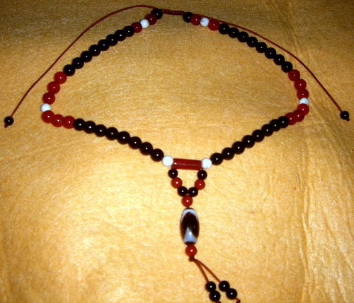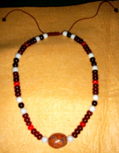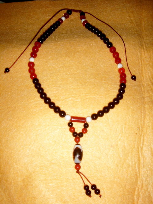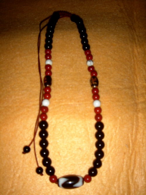 4.黑玉瓍搭配紅玉瓍跟白松石 整串(主珠是立著戴的項圈)