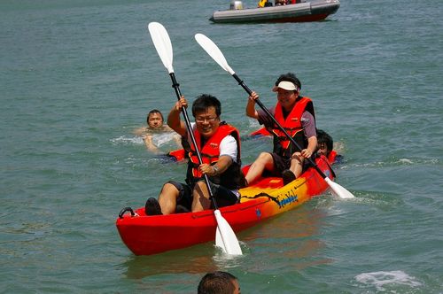 (3)競賽方式:分青少年組、親子組,兩人自組一隊報名,每一隊推一 人海泳烏龜島來回一趟,然後再換雙人操舟,繞烏龜島兩圈,再划回岸邊,依次率先到達計名次,青少年組、親子組各取前三名。
