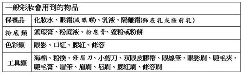 備註:以上物品為參考,非必要全部備齊!!無以上彩妝品之民眾也歡迎報名旁聽。