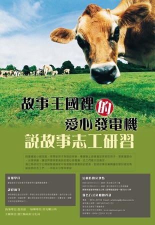 連江縣政府文化局舉辦「98年故事王國裡的愛心發電機—說故事志工研習」尚有報名餘額 , 報名日期延期至98年10月26日(一) , 歡迎喜愛跟孩子說故事及有意參與兒童閱讀推廣者踴躍報名參加。