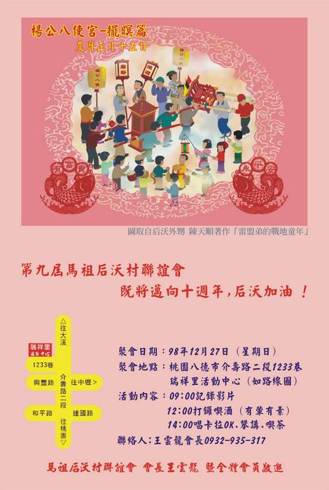 敬愛的后沃鄉親---98年12/27(日)上午 九時起,別忘了特別的日子 ---