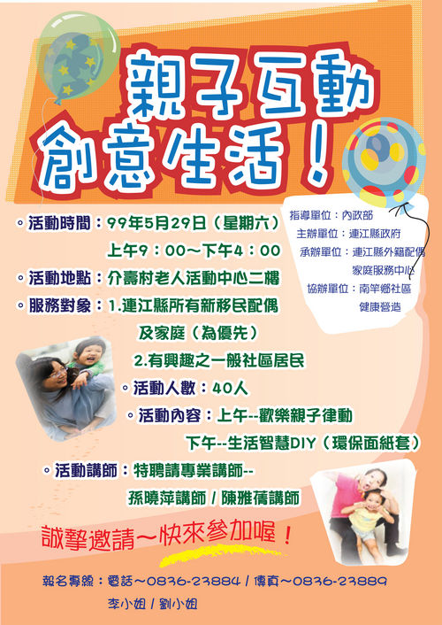外配中心辦理親子教育工作坊~開始報名囉~