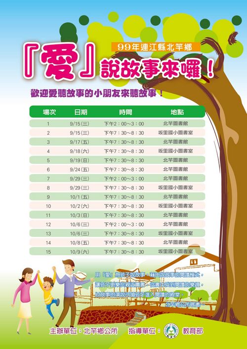 用『愛』為孩子說故事,藉由說故事的閱讀模式,讓孩子更樂於親近圖書,從書中找到閱讀的樂趣,以故事的演說引領孩子進入閱讀的殿堂。