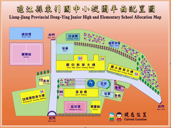 (四)其他:大禮堂、圖書室、多媒體會議室、童軍器材室、體育器材室、保健室、教具室及綜合樂活室;廚房三間;教師宿舍24間;籃球場1座;另東引鄉圖書館、東引鄉體育館及網球場亦興建於校園內,提供學校師生使用。