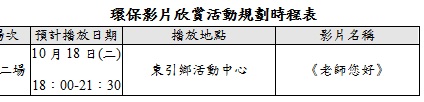 今年連江縣政府配合中央政府節能減碳的宣導活動,本府環保局將辦理四鄉五島環境影片欣賞活動,預計在東引鄉東引島辦理第二場次的環保影片欣賞,撥放影片片名《老師您好》。