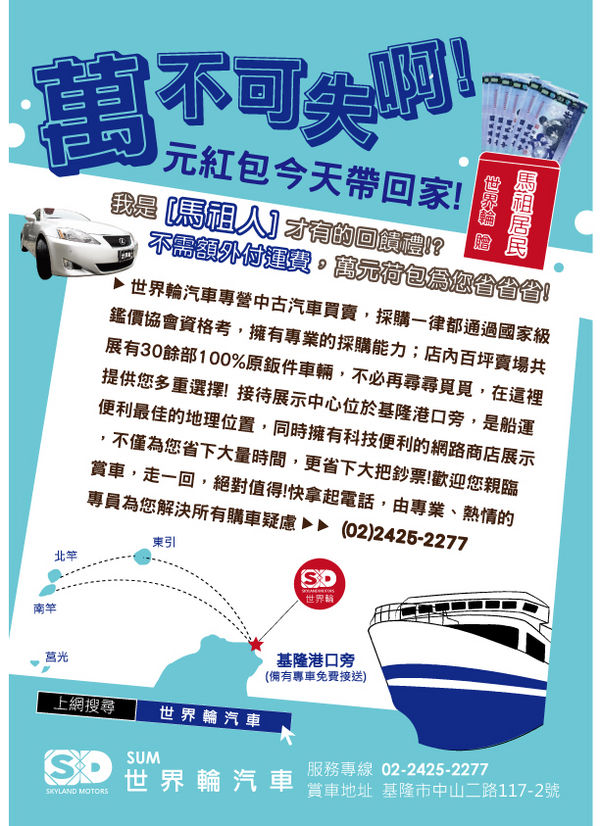 【萬】元紅包帶回家。馬祖人才有的回饋禮!