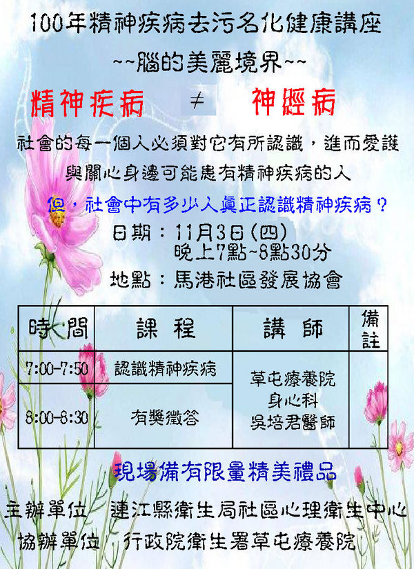 「腦的美麗境界」健康講座就在今晚7點準時開講