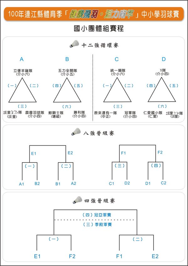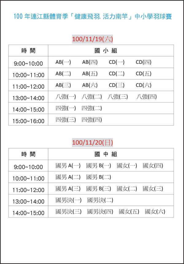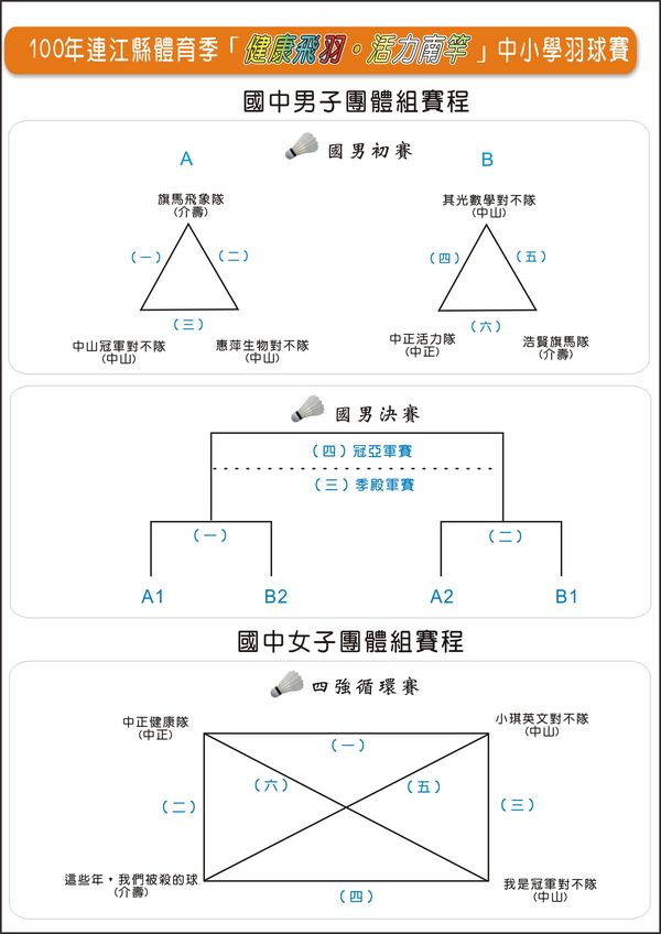 100「健康飛羽•活力南竿」中小學羽球賽賽程與時間表