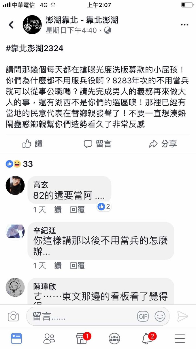 但靠北澎湖也是會出現嫌惡這些年青人的參政手段的貼文。
