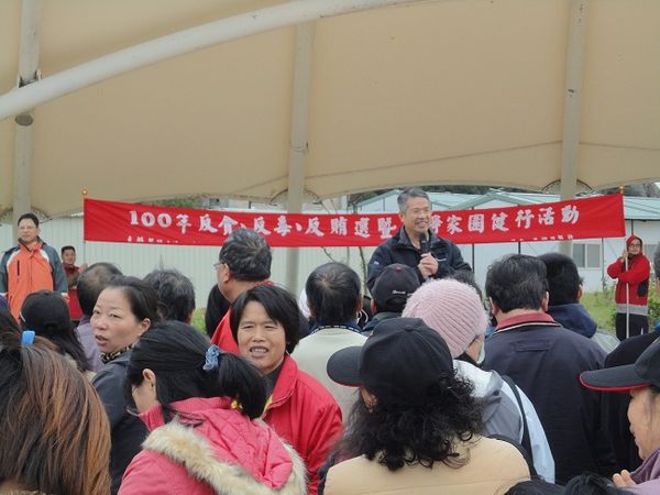 明(101)年1月14日即將舉行第13任總統副總統及第8屆立法委員選舉,連江地檢署為建立全民反賄選意識,除積極規劃及辦理各項反賄選宣導外,自今(100)年8月份起已陸續自辦及結合馬祖地區各項活動進行反賄選宣導,總計已達30餘場次,參與人數更已逾萬人次。因距投票日僅剩30餘日,為凝聚全民反賄選之能量,並配合12月9日國際反貪日,連江地檢署特於今年12月10日星期六上午,假南竿鄉介壽澳口公園,結合財團法人犯罪被害人保護協會福建連江分會、福建更生保護會連江辦事處、連江縣政府、臺電馬祖區營業處等單位,共同舉辦「100年反貪、反毒、反賄選暨清淨家園」健行活動,活動人潮於上午8時30分集合完畢,現場除邀請連江地院紀院長、連江縣政府楊縣長、臺電馬祖區營業處蔡處長、連江縣警察局侯局長等多位首長到場共襄盛舉外,並由洪檢察長培根親自向現場參加之近500位民眾宣導有關貪瀆、毒品、賄選對國家社會及人民的危害性,同時也講解相關之法令與刑責,洪檢察長且呼籲全民應勇於提出檢舉,執法機關除會嚴守保密規定外,政府也會依相關規定發給高額的檢舉獎金,另外洪檢察長也要求鄉親在健行路線上如有發現垃圾應隨手撿拾並放入所發給的垃圾袋內,以共同愛護地區的環境整潔。活動隨即由洪檢察長等各首長帶隊展開,參加民眾均扶老攜幼很有秩序地依主辦單位所規劃的路線前進,而馬祖地區的3位立委候選人也在反賄選健行活動到場及行進間向民眾致意,並均表示對環保與乾淨選舉的支持,約1小時30分鐘待所有參加民眾均抵達終點福澳運動場後,即由洪檢察長親自主持摸彩及兌換宣導品活動,參加民眾反應極為熱烈並對地檢署舉辦這次活動表示肯定,活動在11時30分圓滿完成。