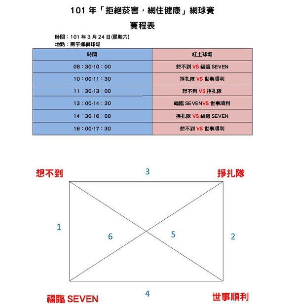 3/24「拒絕菸害,網住健康」賽程表