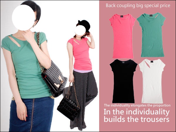 正韓~高質感肩背劃破長版棉質T恤 特價260元