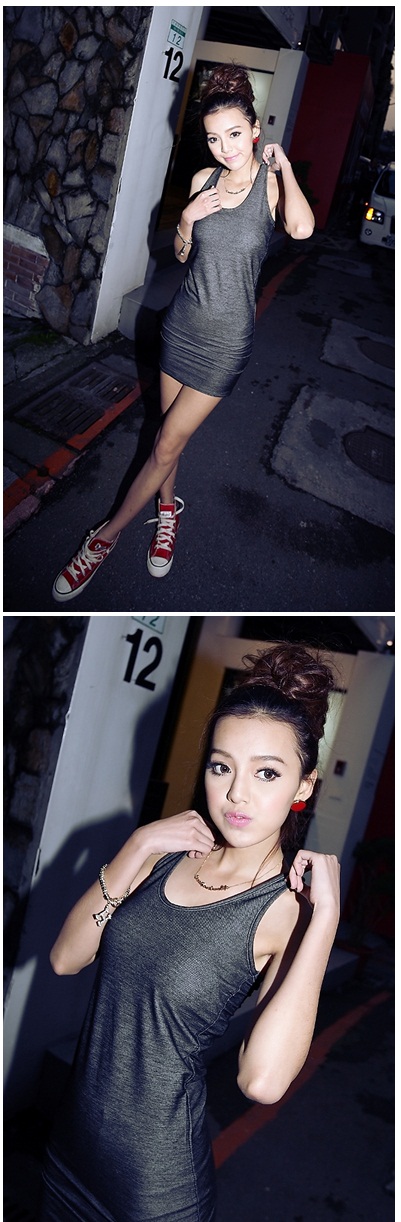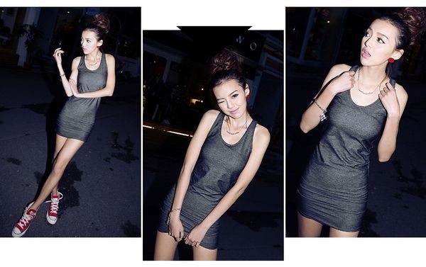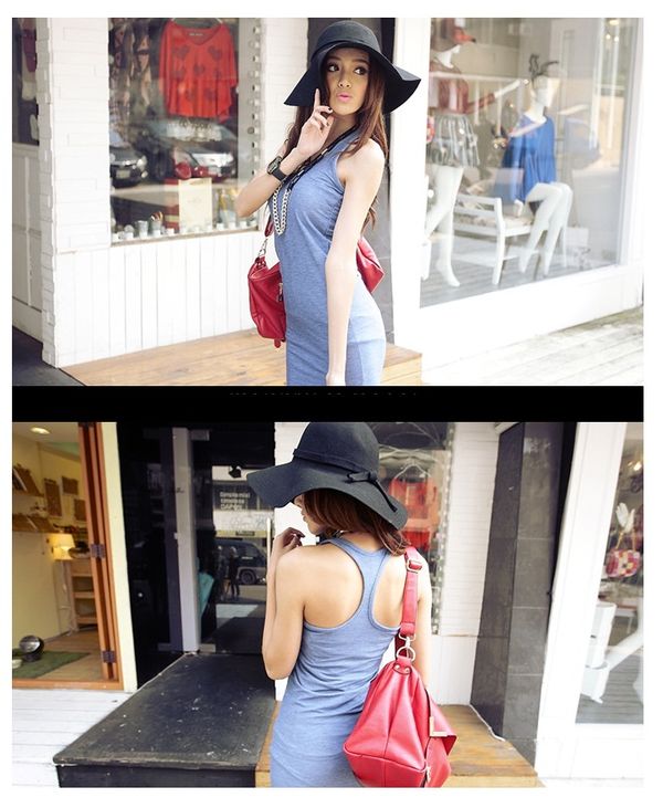 仲夏時髦感牛仔色調棉質挖背長板背心
