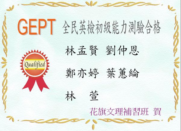 全民英檢通過囉~ 花旗文理補習班狂賀!!
