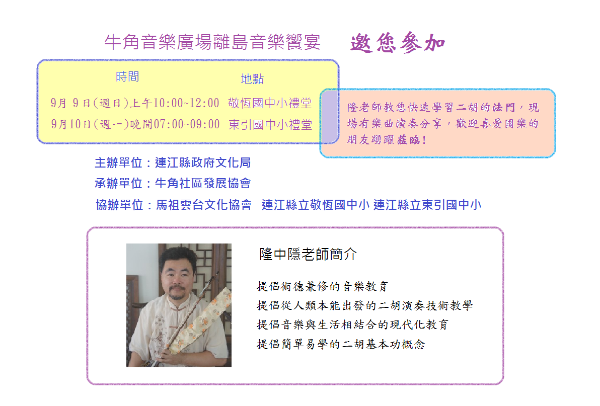 牛角音樂廣場離島音樂饗宴分別在東引與莒光舉行邀請樂友參加