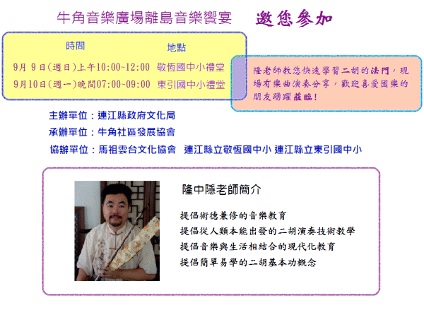 牛角音樂廣場離島音樂饗宴東引時間改為9月10日