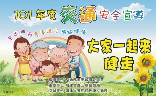 連江縣警察局於9月2日舉辦交通安全宣導健走活動 --閱讀人次 : 1219 為宣達交通安全法規及正確交安觀念,加強宣導道路安全,連江縣警察局於9月2日(星期日)上午8時30分至12時將舉辦交通安全宣導-大家一起來健走活動,歡迎鄉親踴躍參加,凡參加者皆送1份精美禮品(禮品數量有限,送完為止)並可參加摸彩活動。