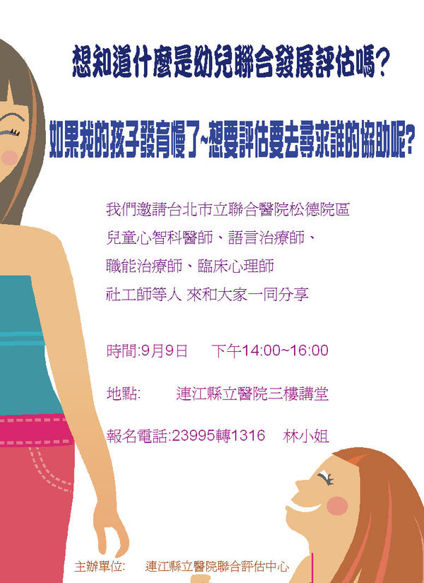 9月9日星期天下午14:00~16:00 兒童聯合發展評估中心~邀請您