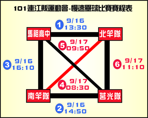 注意事項:9/16若莒光航報未開航,比賽照常舉行.賽程時間表於領隊會議時現場協調公布.