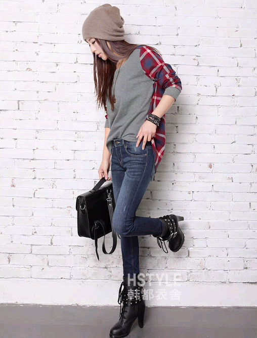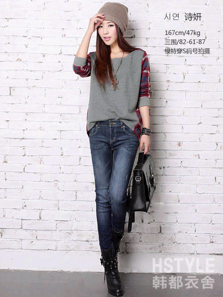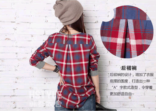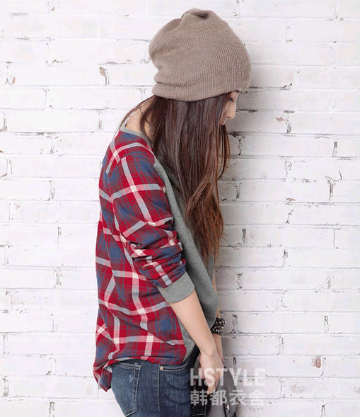 街頭寬松格子長袖T恤圓領...鼓掌.憂質版.鼓掌..尺吋=S/M/L/XL