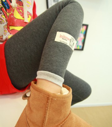 韓國冬純棉加厚抓絨保暖顯瘦海狸絨小貓咪圖案貼布打底褲