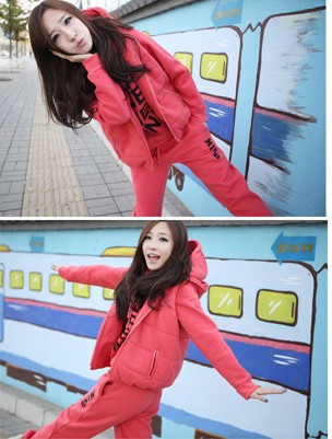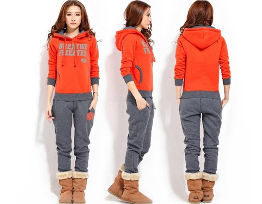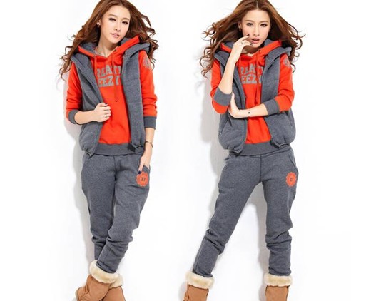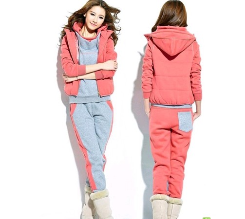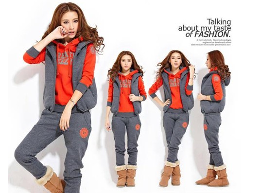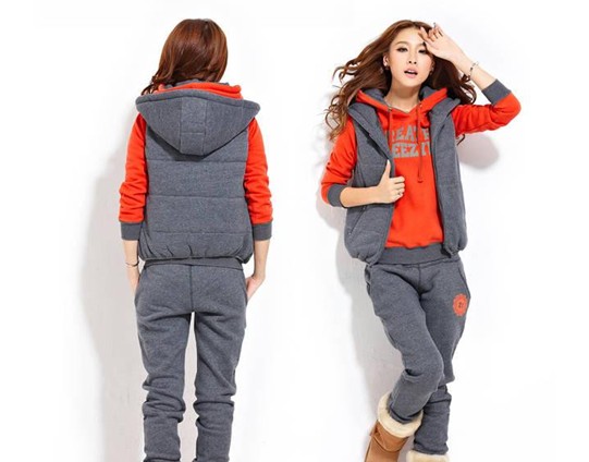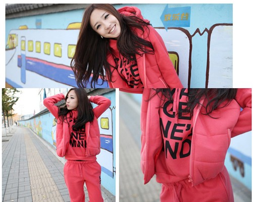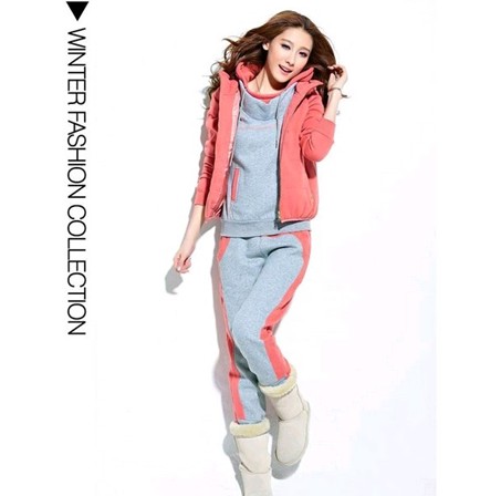 自由呼吸 冬裝新品 三件套女加厚抓絨帶帽修身 休閑套裝
