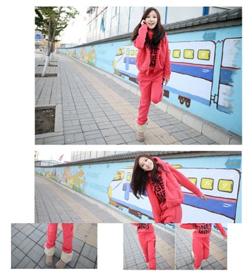 秋冬新款女裝時尚個性休閑套裝加厚抓絨三件套運動服