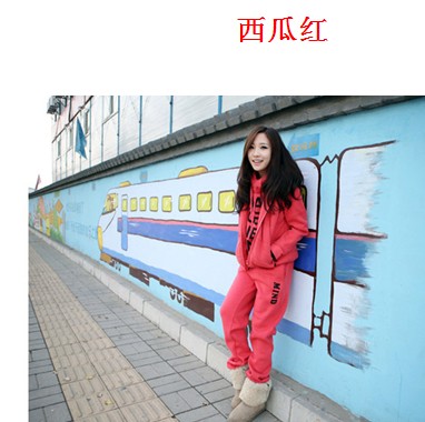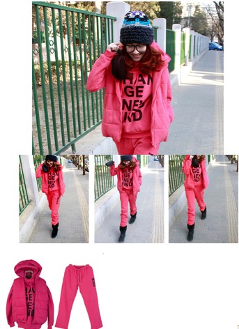 字母加厚實大碼抓絨運動服休閑套裝三件套裝